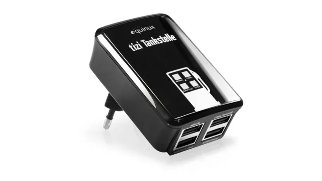 Il Tankstelle (letteralmente distributore di carburante) è prodotto da Equinux, una innovativa e spesso originale azienda che sforna accessori mai scontati nè banali e il caricabatterie è uno di questi: ha quattro porte, in grado di ricaricare smartphone, tablet, lettore mp3, batteria d’emergenza, mouse, tastiera, amplificatore Bluetooth. Ogni USB è studiata infatti per erogare diverse intensità di corrente in modo da permettere di ricaricare insieme sia un iPhone (che richiede 1 A) sia un più esigente iPad (che ne richiede 2 A) che molto altro. Ciascuna porta, in ossequio al nome, è distinta dalla tipologia del “carburante” che eroga: la porta NORMAL è ideale per iPhone in quanto eroga fino a 1 A, quella SUPER PLUS è specifica per iPad in quanto eroga fino a 2.1 A, l’USB DIESEL è specifica per telefoni Samsung mentre la porta denominata SUPER (1.5 A) è generica per altri dispositivi. Ovviamente le specificazioni sui dispositivi sono puramente indicative e potrete collegare qualunque cosa a qualunque porta, sapendo che l’amperaggio disponibile ne regolerà la velocità di ricarica.