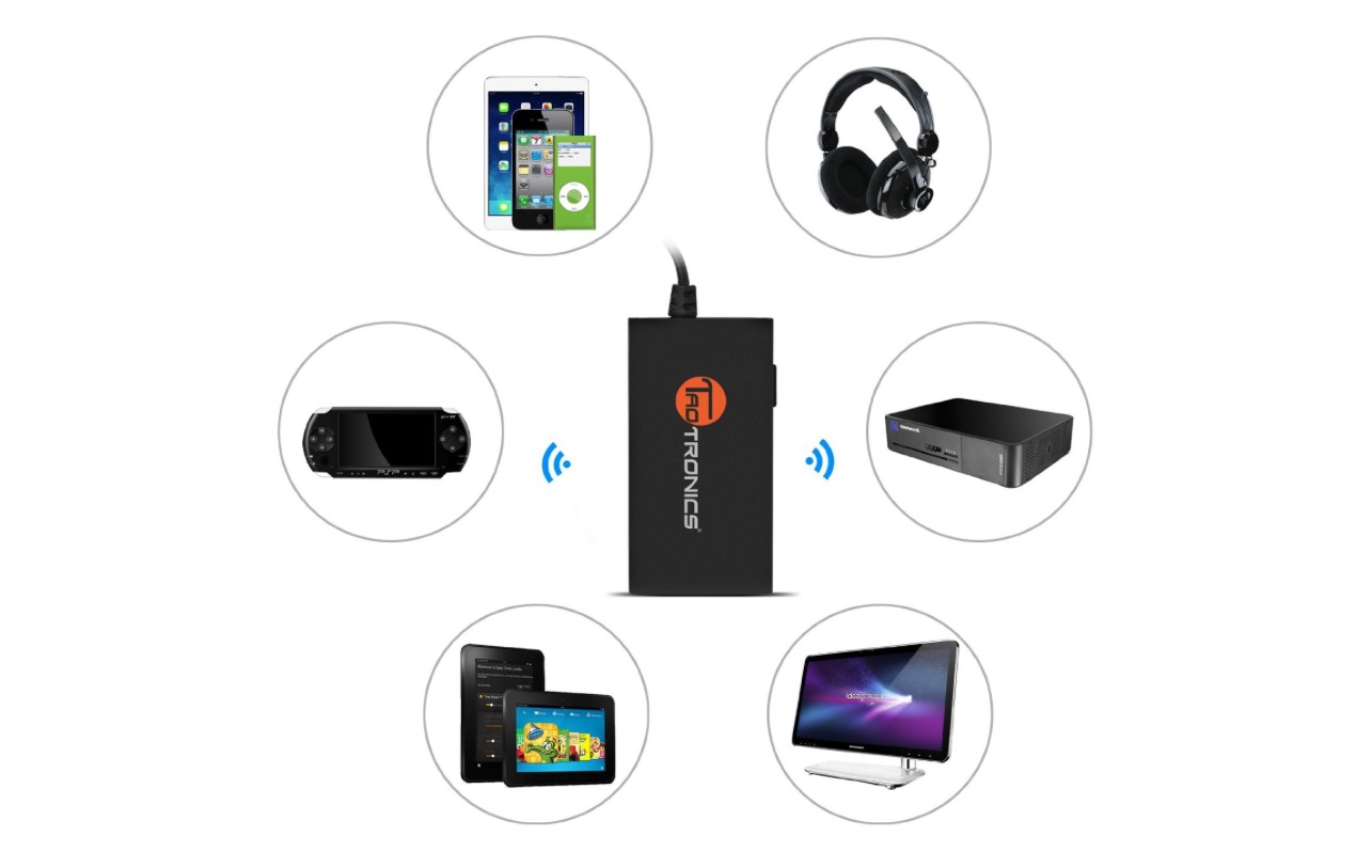 Con il TaoTronics TT-BA01 potremo, ad esempio, avere suono wireles da un vecchio stereo o anche da un vecchio iPod. Ma anche computer datati, lettori CD, MP3, vecchi mangianastri e molti altri dispositivi del genere potranno essere dotati di Bluetooth grazie a questo comodo trasmettitore. Il collegamento avviene tramite cavo jack da 3,5 millimetri, uno standard presente da decenni in tutti i dispositivi di questo genere, e può essere adattato eventualmente a qualsiasi televisore grazie all’adattatore audio RCA (i connettori bianco e rosso) incluso nella confezione. Funziona fino a 10 metri di distanza e garantisce 4 ore consecutive di utilizzo, grazie alla batteria integrata, quindi è perfetto anche per chi vuole ascoltare la televisione di notte senza disturbare i vicini. Da segnalare che diversi clienti che hanno comprato il TT-BA01, che il ritardo di trasmissione (un problema su altri accessori) è davvero molto modesto e questo lo rende adatto anche ad una trasmissione TV.