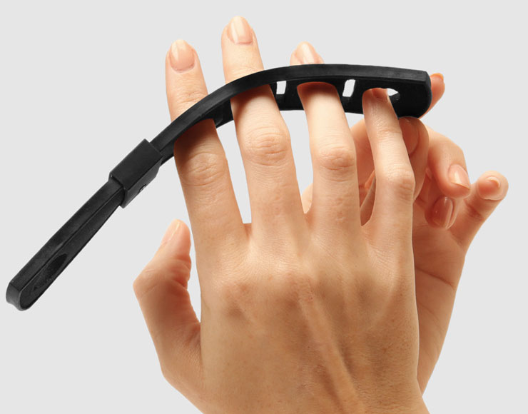 Tap Strap è un’idea stravagante ma intrigante: un accessorio di plastica da inserire tra le dita di una o tutte e due le mani permettendo di trasformare qualsiasi superfice in una sorta di tastiera virtuale, compatibile con qualsiasi dispositivo mobile, inclusi iPhone e iPad. L’oggetto è realizzato con un materiale flessibile e integra una serie di sensori che consentono di inviare comandi che saranno interpretati dal dispositivo ricevente grazie ad app e software ad hoc.