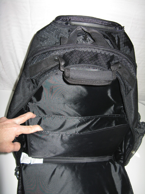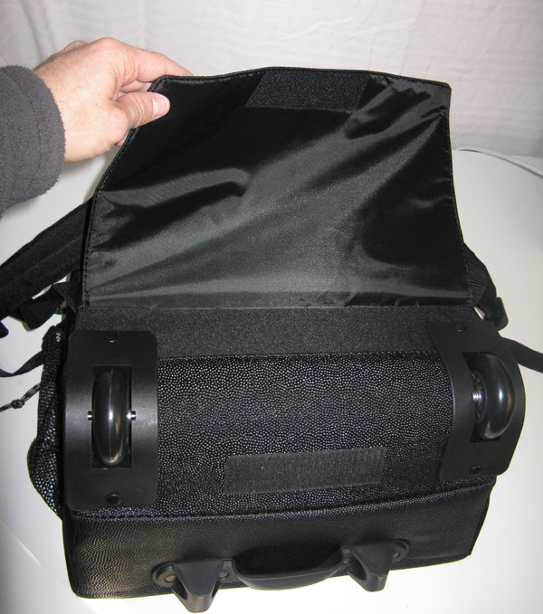 La buona qualità di realizzazione e lo spazio notevole a disposizione per l’utente sono i dettagli che ci hanno positivamente colpito. Intelligente anche l’idea di trasformare la zaino in un vero e proprio trolley. Un pannello dotato di velcro permette di fissare e nascondere gli spallacci quando il Rolling Notebook è usato come trolley. Viceversa, quando desideriamo trasportarlo sulle spalle lo stesso pannello con velcro serve per nascondere le ruote, evitando così che vengano a contatto con la nostra schiena. L’unico inconveniente da rilevare è l’elevato peso a vuoto, circa 2,7 kg. Questo passa in secondo piano se il Rolling Backpack è utilizzato principalmente come trolley; se invece prevediamo di doverlo trasportare spesso sulle spalle è opportuno tenere presente il peso totale dello zaino unito a quello di tutta la nostra attrezzatura.