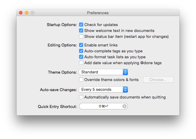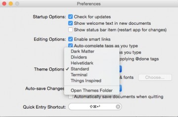 A disposizione di chi lavora su questa app, c’è la possibilità ovviamente di personalizzare i temi, con un meccanismo di scelta nelle preferenze che apre la strada anche alla personalizzazione (dopotutto sono semplici CSS) e poi alla creazione di un sistema di Quick Entry con una finestra fluttuante evocata con una scorciatoia di sistema che rende il software molto flessibile e permette di utilizzarlo praticamente da qualunque altro contesto.