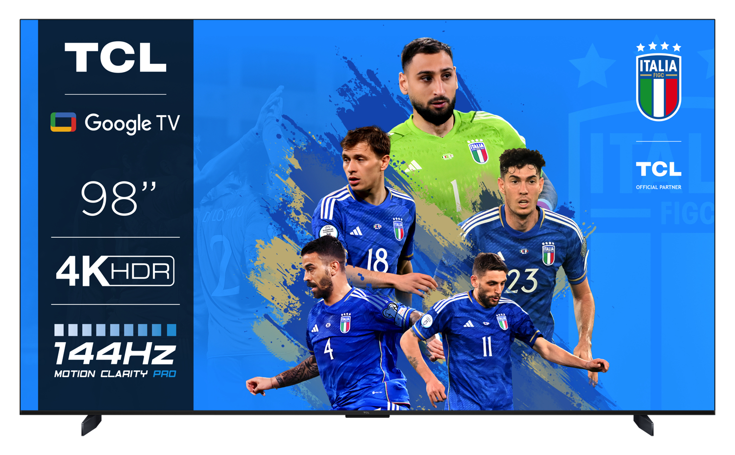 Il modello TCL 98C80 è il primo 98 pollici con retroilluminazione Mini LED, con ben 1.344 zone di local dimming. Offre 1.600 nit di luminosità di picco, Google TV, supporto trasversale per tutti i formati HDR (Dolby Vision IQ, HLG, HDR10+), HDMI 2.1, pannello a 144 Hz con VRR da 48 a 144 Hz, sistema audio ONKYO 2.1 60W con supporto Dolby Atmos.