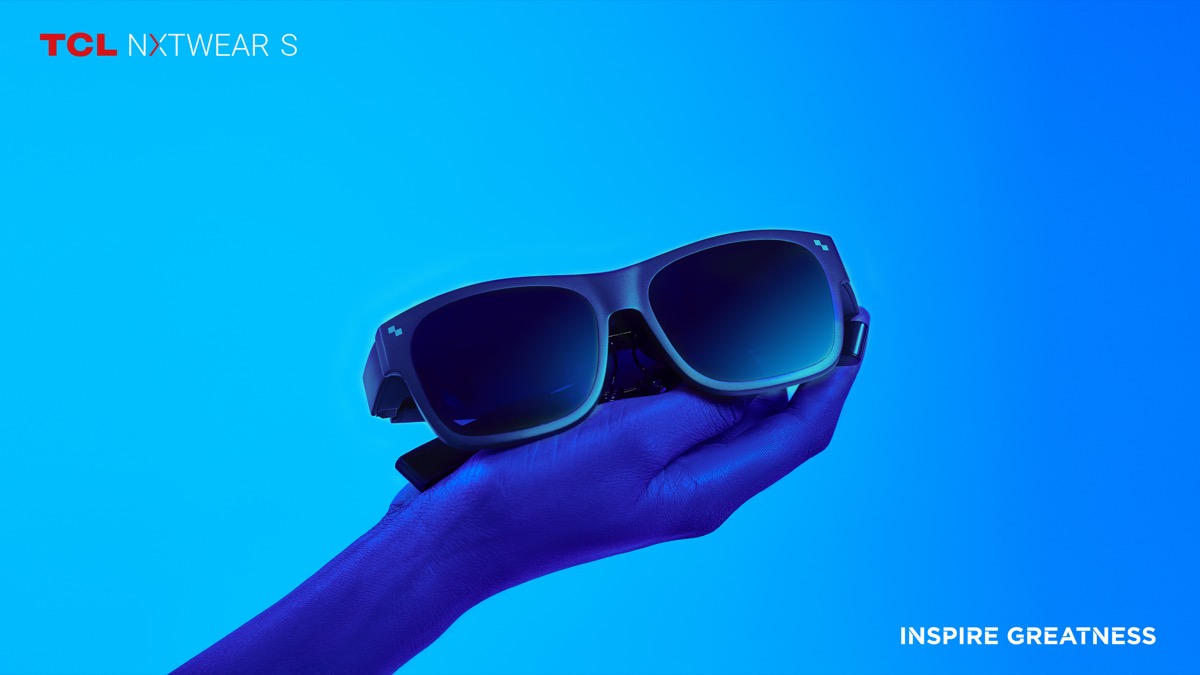 Inoltre, TCL ha anche presentato i suoi occhiali TCL NXTWEAR Wearable Display Glasses che pesano appena 75 grammi, e che danno allo spettatore la sensazione di vedere uno schermo da 140 pollici a 4 metri di distanza.