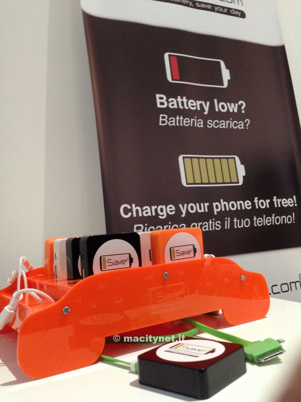 Iniziamo con Savesquared giovane startup che corre in soccorso dei partecipanti ad eventi di questo tipo, mettendo a disposizione delle batterie, e dei cavi di alimentazione (qualche problema su iOS 7 con l’adattatore dei nuovi iPhone ed iPad) per la ricarica – on the go – di smartphone e tablet vari. Il loro modello di business è, tra gli altri, la fornitura delle batterie e delle stazioni di ricarica ai vari locali, così da rendere disponibile il servizio per gli avventori.