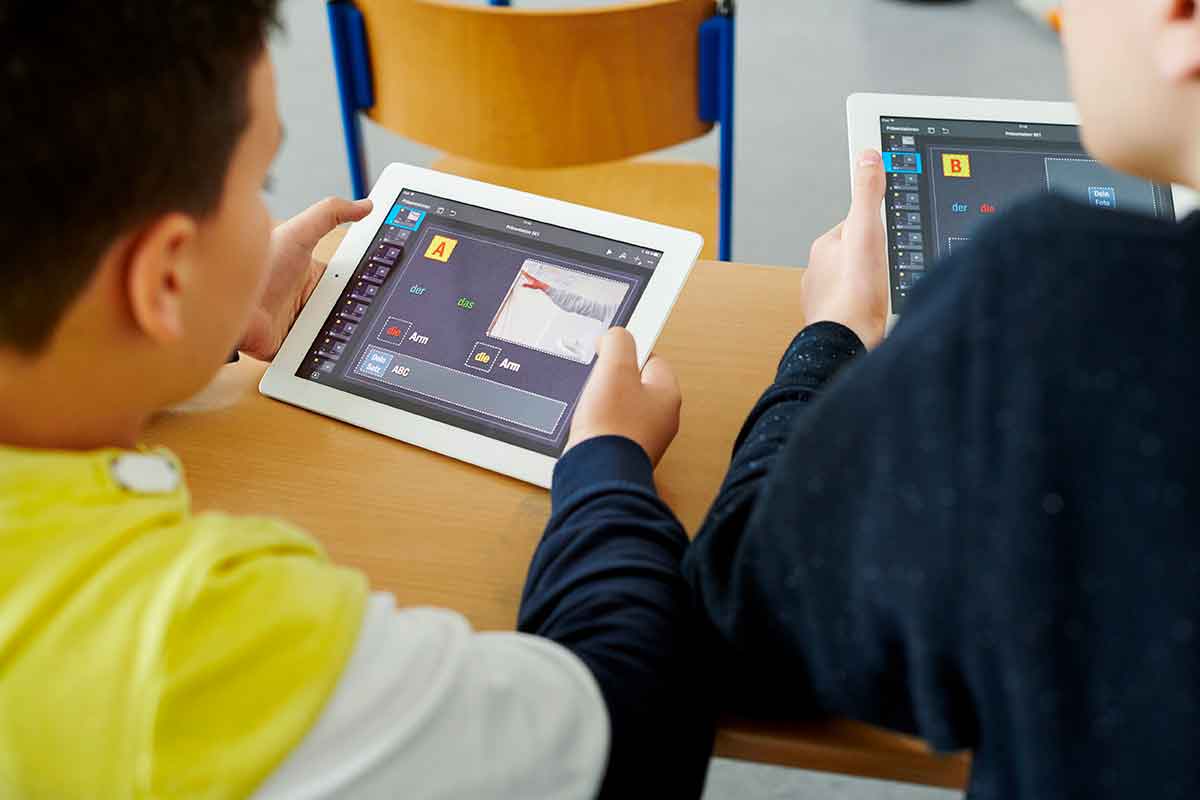 Nell’ultimo anno, Medina, suo fratello e gli altri compagni di classe hanno lavorato sugli iPad tutti i giorni, usando anche alcune lezioni create da Kyriakidis con Keynote. Oggi, Medina deve comporre una frase in tedesco mettendo le parole nel giusto ordine e usare l’iPad per registrarsi mentre la pronuncia. In questo modo, lei e i suoi compagni hanno la possibilità di fare pratica con le parole straniere in autonomia, senza imbarazzo, e di lavorare al proprio ritmo.
