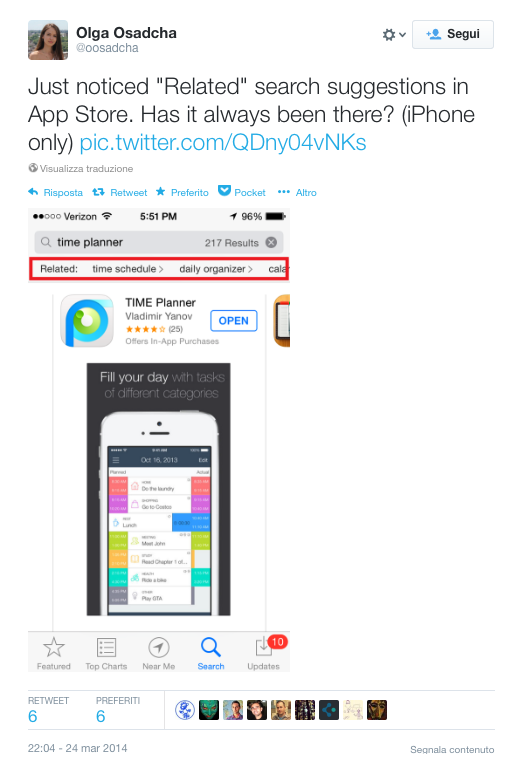 Diversi utenti stanno segnalando una novità presente all’interno dell’applicazione App Store di iOS: a quanto pare, effettuando una qualsiasi ricerca attraverso l’apposito box, l’app suggerisce dei termini correlati proprio sotto quest’ultimo. Questa nuova funzione permette all’utente che ha inserito una parola per ricercare una app o un titolo di visualizzare gli altri termini correlati, così in sostanza il sistema suggerisce altre app e titoli in qualche modo legati all’app ricercata.
