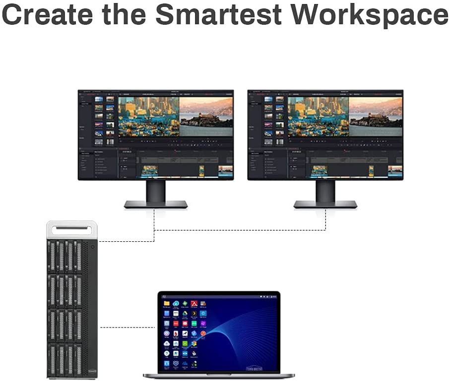 D16 Thunderbolt 3 integra un processore dedicato così da non dover utilizzare la CPU del computer per la gestione degli hard disk, massimizzando le prestazioni di trasferimento dati in modalità RAID. Grazie ad una coppia di interfacce Thunderbolt 3 da 40 Gbps, questa soluzione è veloce e affidabile per le attività di archiviazione e recupero più impegnative, inclusi flussi di lavoro come l’editing video 4K/8K non lineare e lo streaming per film e televisione. Altre applicazioni includono la progettazione di animazioni, l’elaborazione 3D, la fotografia e altre attività che richiedono velocità, capacità, basso rumore e volume dati elevato.