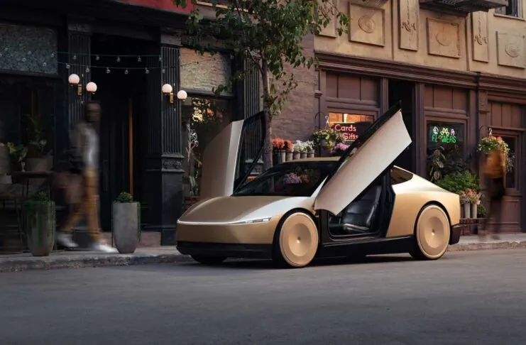 Elon Musk ha fatto una delle sue entrate appariscenti all’evento “We, Robot” che si è tenuto in un finto quartiere di città, in realtà un set: il Discovery Studio della Warner Bros, a Hollywood. Per salire sul palco Musk è arrivato con un robotaxi, Cybercab, dal design filante simile a quello del Cybertruck, con l’apertura delle porte ad ala di gabbiano (come la Tesla Model X), e ha fatto una breve dimostrazione intorno alle strade “finte” dello studio di Hollywood.