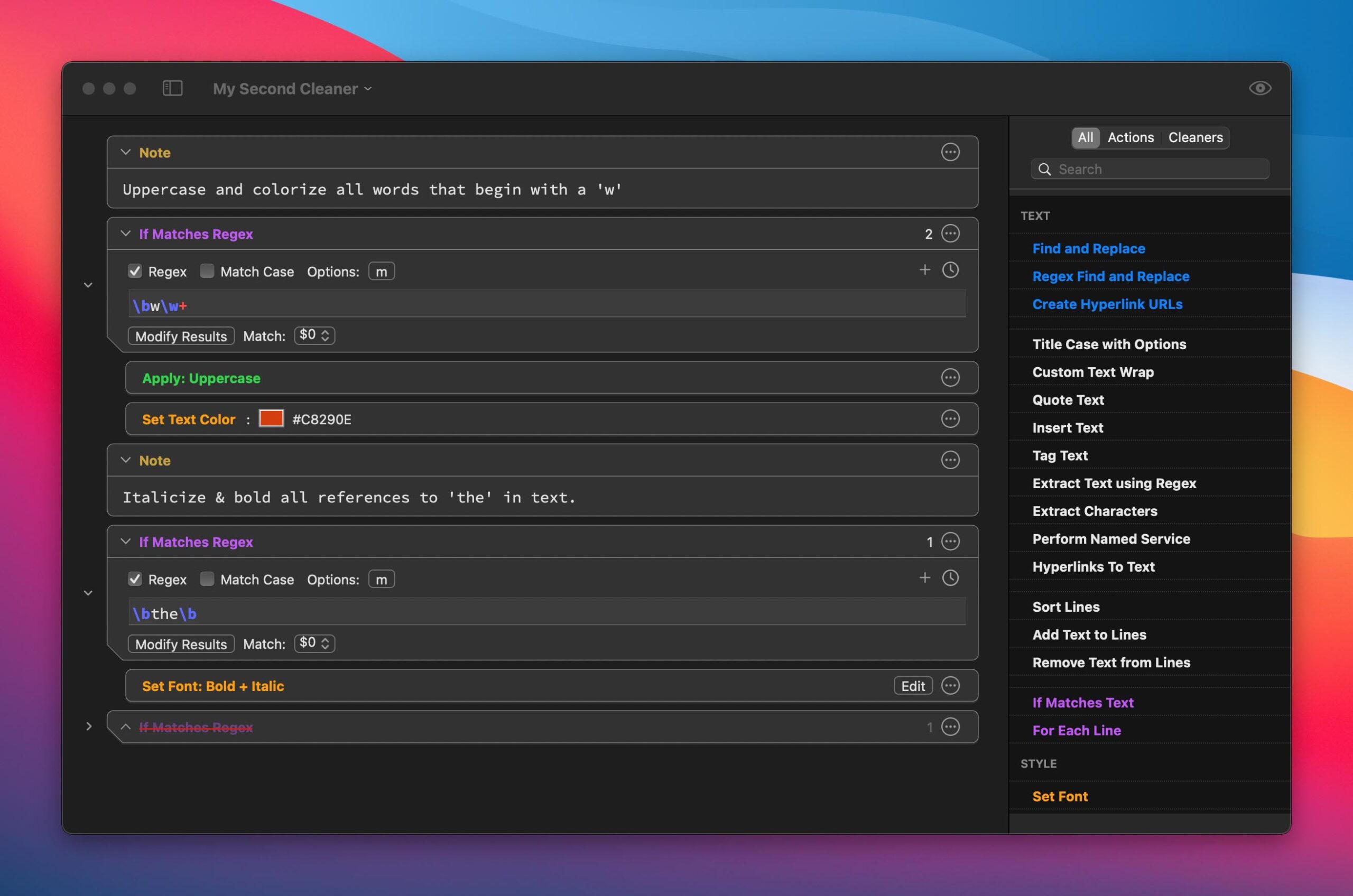 La nuova versione di TextSoap integra il supporto per i Mac con processore M1, presenta una interfaccia aggiornata (con supporto alla Dark Mode) e offre ancora più funzionalità per la modifica e manipolazione dei testi.