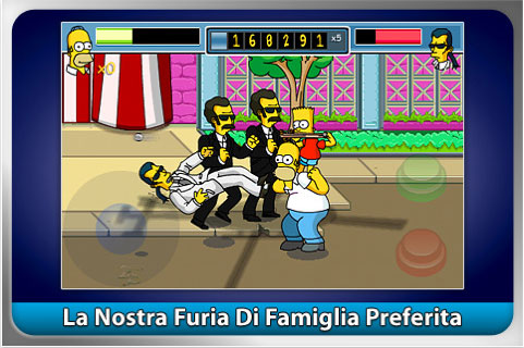 Nell’azione controllata tramite comandi a sfioramento dobbiamo evitare e mettere fuori combattimento i membri della cosca che si frappongono tra noi e la ciambella. Invece di pugni e combo acrobatiche il nostro uomo medio statunitense prenderà a calci, sederate, panciate e così via i cattivi di turno in oltre 25 livelli di gioco e 6 ambientazioni diverse. Accumulando punti e potenziamenti potremo richiedere l’aiuto dagli altri elementi di una delle famiglie più famose degli USA: dalla paziente moglie Marge ma anche dai figli Maggie, Lisa e Bart.