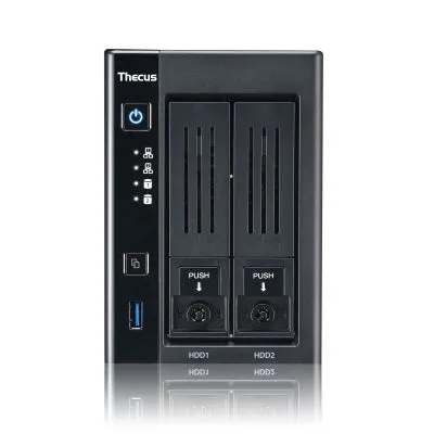 Può accogliere 2 HDD SATA, che possono essere configurati in base alle esigenze in RAID 0, 1 o JBOD. E’ basato su processori Intel N3050 Dual Core a 1,6 GHz, coadiuvato da 2 GB di RAM DDR3, quindi perfettamente in grado di riprodurre video anche in 4K. Inoltre mette a disposizione un motore crittografico AES-NI per una elevata protezione dei dati.