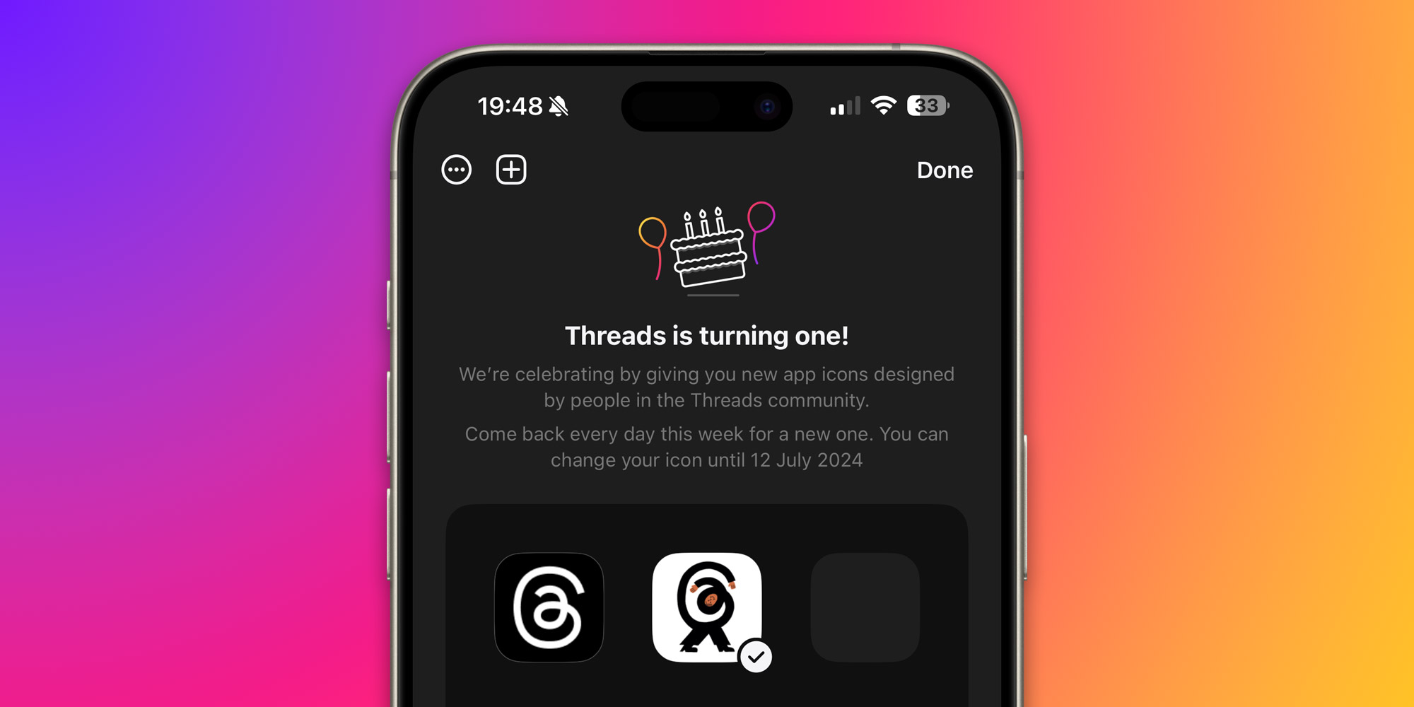 Per cambiare l’icona di Threads sul proprio dispositivo, è necessario aprire l’app Threads, toccare la scheda del proprio profilo e, successivamente, l’icona della torta di compleanno in alto sullo schermo. Da qui sarà possibile scegliere una delle icone disponibili.