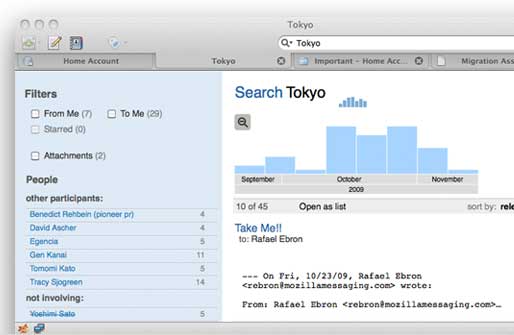 Dopo un lungo periodo di beta testing e il rilascio di varie versioni preliminari, Mozilla ha rilasciato la nuova versione 3 definitiva del cliente di posta elettronica. Tra le novità più interessanti di questa versione, la gestione a schede della posta elettronica (un sistema simile a quello già usato in FireFox). Anche i risultati delle ricerche possono essere aperti in una nuova scheda. Interessante anche il grafico della sequenza temporale (timeline) e i filtri che aiutano a individuare i messaggi che si stanno cercando. I messaggi sono costantemente indicizzati e l’esito delle ricerche è visualizzato in nuove schede: in questo modo è semplice passare da un messaggio all’altro o tornare alla scheda con tutti i risultati.