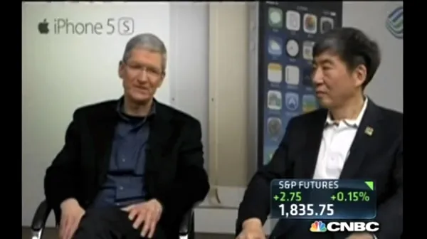 Raramente i dirigenti Apple appaiono in televisione: oggi Tim Cook insieme a Xi Guohua, presidente di China Mobile, ha concesso una intervista alla CNBC per pubblicizzare l’accordo con il più grande operatore mobile in Cina e nel mondo alla vigilia dell’inizio delle vendite di iPhone che avverrà venerdì 17 gennaio.