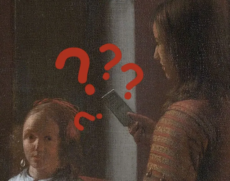 Il dipinto al quale fa riferimento Cook, per dovere di cronaca, non è un Rembrandt ma è un quadro di Pieter de Hooch dal titolo: “Het aanreiken van een brief in een voorhuis” (donna che riceve una lettera da un uomo), opera terminata nel 1670. Il pittore olandese studiò a Haarlem componendo opere che ritraevano scene di vita familiare con lo di stile di Jan Vermeer e le soluzioni luministiche di Rembrandt. Nelle mani della domestica che entra in una stanza dove siede una giovane donna, ovviamente, non c’è un iPhone ma, come dice il titolo, una missiva ripiegata e l’aspetto potrebbe più essere quello di un iPod con click wheel che un iPhone…