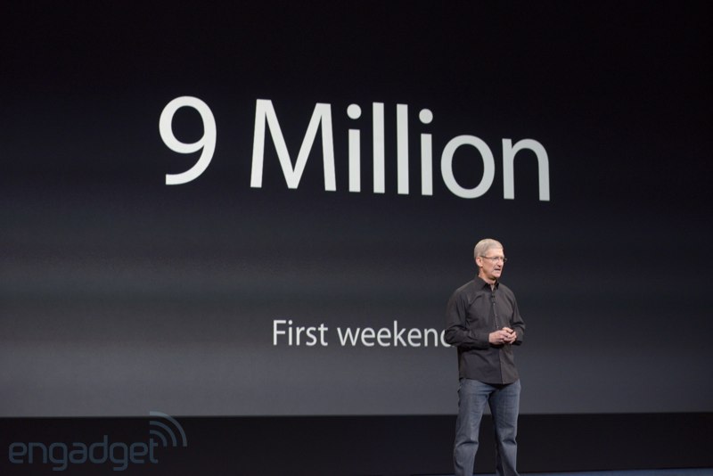 Preceduto da un filmato con persone esultanti per essere riuscite a compare un iPhone (non precisamente qualche cosa di nuovo, ma Appleè tra le poche aziende al mondo, se non l’unica a suscitare questo tipo di reazioni), Cook ha aggiunto che «il lancio i iPhone di ques’anno è stato il maggiore di tutti i tempi. iOS 7 ha avuto lo stesso successo e ha conquistato in un mese i due terzi, il 64%, dei dispositivi, circa 200 milioni tra iPad, iPhone e iPod touch. Abbiamo avuto anche un incredibile successo con iTunes Radio: 20 milioni di ascoltatori, un miliardo di canzoni riprodotte».