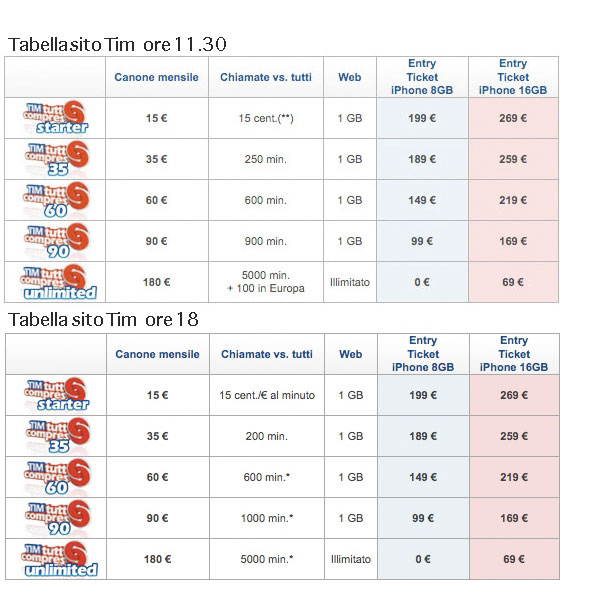 Di questa mattina è la notizia, anticipata dal nostro sito, del cambiamento delle tariffe per iPhone di Tim, di questa sera (come ci segnala Roberto Spatola) una nuova variazione che modifica ancora la proposta commerciale riservata dal maggior operatore mobile nazionale ai possessori del cellulare di Apple.