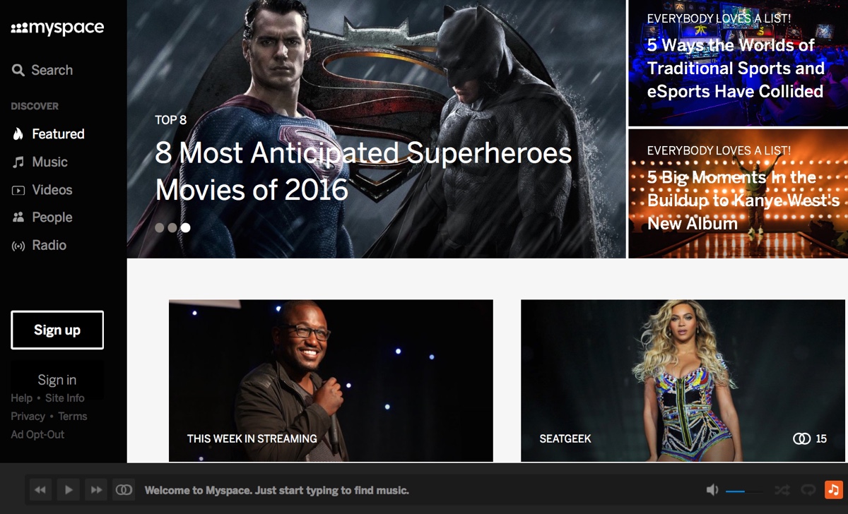 Con una mossa a sopresa Time compra MySpace, piattaforma per spazi web personali che per molti aspetti ha anticipato i social network moderni, così come li conosciamo oggi. Oggi è finita nel dimenticatoio, ma fino a pochi anni fa MySpace (nata nel 2003) era una comunità virtuale e una rete sociale molto attiva che offriva agli utenti blog, profili, funzioni per gestione di foto, musica, filmati e molto altro ancora. In virtù della possibilità di caricare file MP3, funzionalità per molto tempo non permessa dai concorrenti, la rete in questione è stata spesso usata come vetrina da vari gruppi musicali.