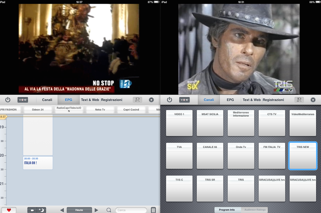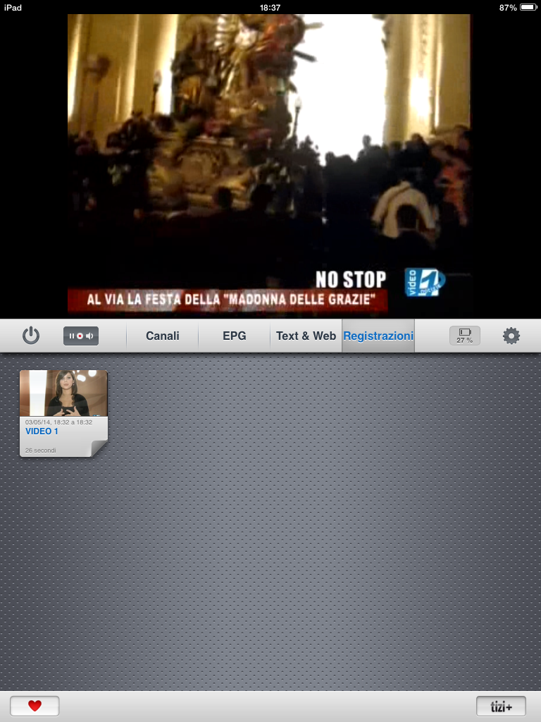 Tizi.tv è l’applicazione gratuita messa a disposizione dal team equinux per guardare e registrare la programmazione del digitale terrestre. L’app è disponibile sia per iOS, che per Android, ma sui dispositivi di Google risulta assolutamente non curata, quasi inutilizzabile o, nella migliore delle ipotesi, solo lenta e mal funzionante. Completamente diversa, invece, è l’applicazione iOS, funzionale e molto più curata della controparte Android, anche se perfezionabile. Al primo avvio sarà necessario effettuare la ricerca dei canali, selezionando il proprio paese oppure attivando i servizi di locazione dal menù impostazioni. Durante le nostre prove abbiamo riscontrato miglior fortuna impostando manualmente il paese, evitando che l’applicazione effettuasse una scansione automatica sulla base dei servizi di localizzazione. L’applicazione tizi.tv funzione in modalità verticale e orizzontale. Quest’ultima serve, essenzialmente, per visualizzare a schermo intero i propri programmi preferiti, mentre in modalità portrait è possibile cambiare canale, programmare una registrazione o guardare la guida TV. L’applicazione è intuitiva e piacevole dal punto di vista grafico, anche se non perfettamente adattata a iOS 7. I menù non sono troppo snelli e minimali come richiederebbe l’ultimo sistema operativo mobile di Apple, ma nel complesso svolge bene il suo lavoro.