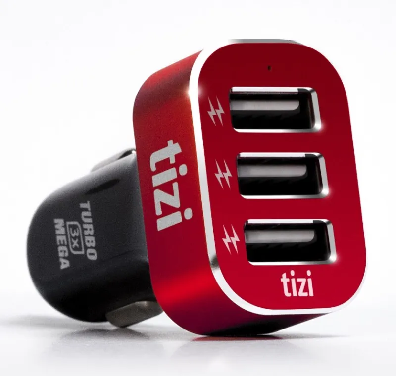 La differenza principale, oltre che nel colore dell’alluminio spazzolato che accoglie le tre porte USB in rosso anziché argento, sta nella potenza di uscita, messa in evidenza dal nome stesso della nuova versione. Anziché 5.1 A, il nuovo Tizi Turbolader MEGA eroga fino a 6,6 A in tre porte USB: ciò significa che ciascuna porta eroga fino ad un massimo di 2.2 A, perfette per ricaricare a piena potenza anche tre tablet contemporaneamente, oppure tre iPhone 6 e 6 Plus al doppio della velocità.