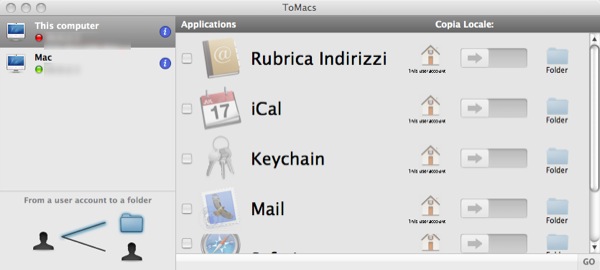 ToMacs consente di sincronizzare bi-univocamente due Mac connessi su uno stesso network (via SSH) oppure due Mac a sè stanti; quest’ultima opzione avverrà utilizzando come tramite un supporto di archiviazione, come hard-disk drive, USN pendrive o un CD. Di base, saranno sincronizzabili la posta elettronica, il portachiavi, la rubrica indirizzi, il calendario e i preferiti di Safari, con l’ulteriore possibilità di aggiungere altri informazioni da sincronizzare.