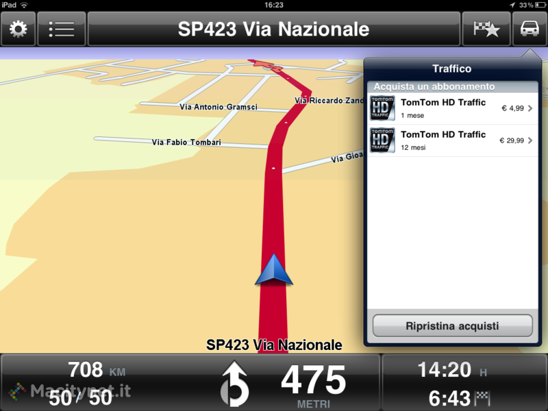 TomTom ha rilasciato la nuova versione 1.9 dell’app di navigazione TomTom (qui la versione Italia e da qui le altre versioni) che diventa universal per funzionare già ottimizzata sia su iPhone che su iPad. Gli utenti che possiedono l’app TomTom per iPhone possono così utilizzarla immediatamente su iPad: in questo caso lo sviluppatore assicura una visuale con interfaccia ottimizzata, in grado di mostrare allo stesso tempo la finestra di guida e le immagini dell’indicaore di corsia avanzato.