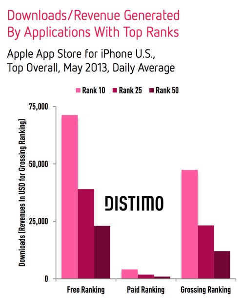 Per riuscire ad entrare nelle classifiche delle Top App iTunes, come Top App Gratuite, Top App Redditizie o Top App Acquistate, sono necessari numeri sempre più importanti. I dati sono stati analizzati da Distimo, che ha ipotizzato quali possano essere i risultati necessari per riuscire a vedere la propria app posizionarsi nelle varie top 10 di App Store.