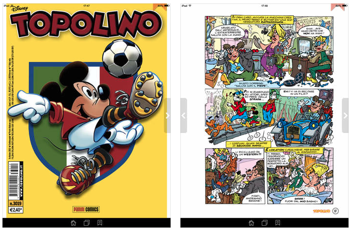 L’applicazione – disponibile anche per Android dalle versione 4 in poi – è su App Store ed è disponibile gratuitamente per iPhone e iPad ed è compatibile con dispositivi con iOS 7 o versioni successive. Gli utenti potranno scegliere se acquistare direttamente sull’applicazione in base alle offerte disponibili (un numero di Topolino digitale costa 1,99 euro) oppure potranno leggere le copie del fumetto cui si è abbonati attraverso l’app. Per abbonarsi a Topolino in versione digitale (un anno a 62,90 euro) o cartacea e digitale (un anno a 84,90 euro anziché 130 euro se effettuato online) si può fare riferimento direttamente a Panini editore.