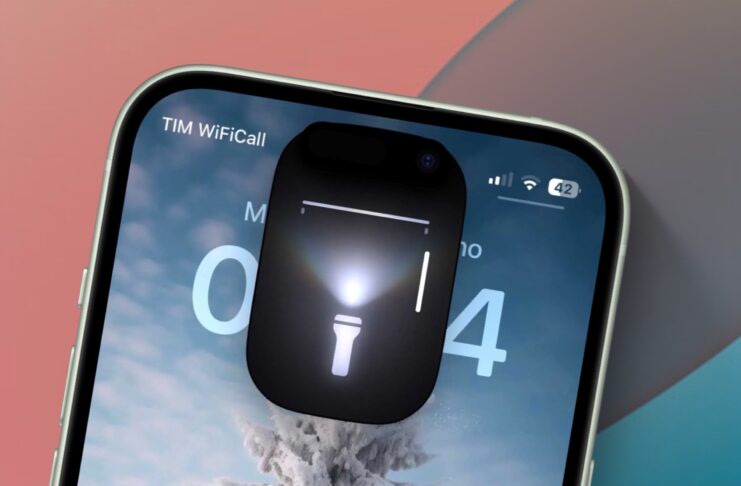 Non solo attivando la torcia su iOS 18 la Dynamic Island cambia forma accogliendo un nuovo pannello per la torcia, ma attraverso alcuni gesti su schermo diventa possibile regolarne alcuni parametri.