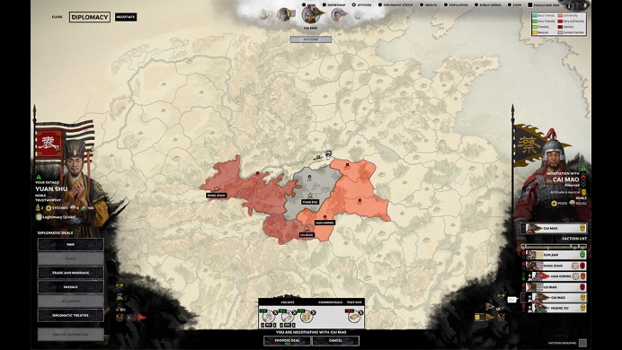 Non solo: alla bravura nel gestire risorse, forze e truppe occorre sempre abbinare anche la capacità di stringere amicizie e alleanze, guadagnare il rispetto dei nemici. A questo riguardo il gioco si ispira al sistema cinese Guaxny delle relazioni dinamiche.