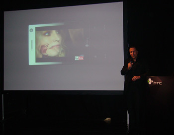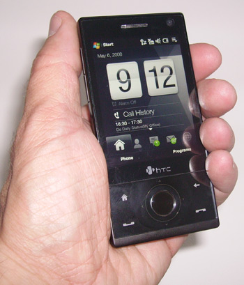 Daniele De Grandis, HTC Country Manager Sud Est Europe ha presentato il Diamond alla folta platea di giornalisti italiani. Per sostituire il classico controllo tramite pennino HTC ha ulteriormente migliorato l’interfaccia Touch sviluppata internamente che si sovrappone a quella tradizionale di Windows Mobile. Il sistema grafico sfrutta le buone qualità di visualizzazione dello schermo da 2,8 pollici con risoluzione VGA per creare animazioni ed effetti 2D e 3D. Tutto è stato studiato per controllare la maggior parte delle funzioni con un solo dito della stessa mano che sostiene lo smartphone. Sotto allo schermo troviamo i pulsanti principali fisici per il controllo: il tasto home, il tasto indietro, infine due pulsanti per avviare e terminare le telefonate. Al centro dei 4 pulsanti è posizionato un tasto circolare che oltre che essere premuto per le conferme, può ruotare su sé stesso per scorrere tra gli elementi visualizzati, ingrandire le pagine Web e molto altro ancora a seconda del contesto in cui l’utente si trova.