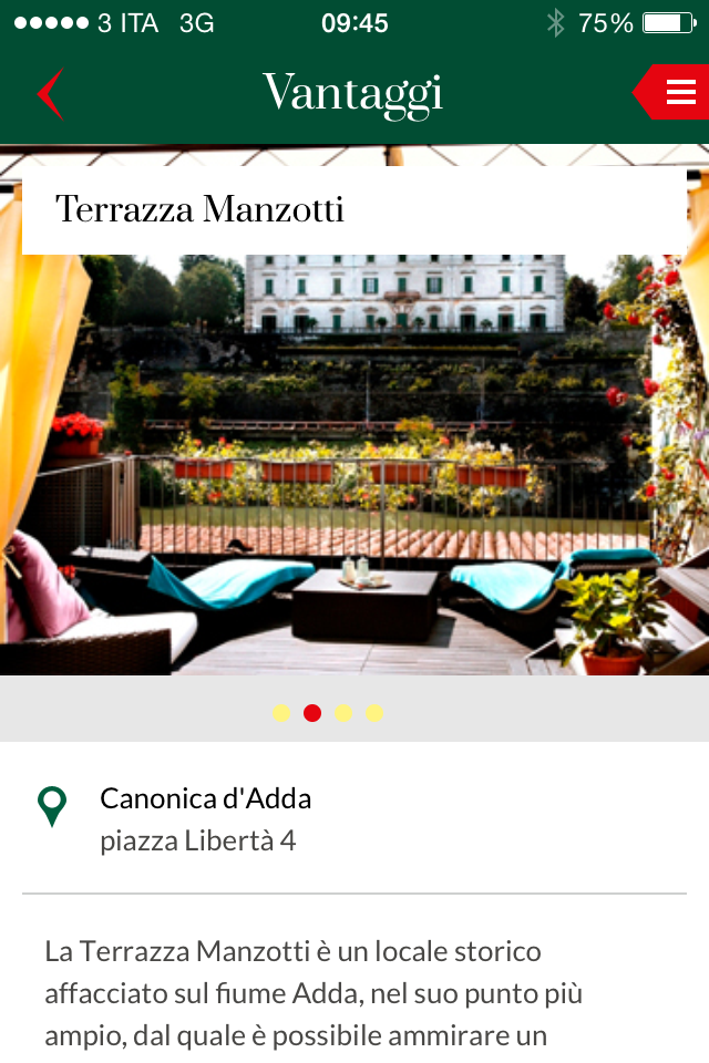 Con l’aggiornamento 2.0 l’app Touring in viaggio gratis per iOS è stata completamente rinnovata e arricchita con numerose funzioni. Grafica e menu sono stati migliorati per facilitare la consultazione e l’uso. Nella schermata principale gli utenti sono accolti con indicazioni in tempo reale sulle strutture convenzionate con il Touring Club Italiano, tra cui alberghi musei e ristoranti. Per la prima volta sono state integrate le recensioni degli utenti: è possibile postare le proprie esperienze e commentare quelle pubblicate da altri. Dal nuovo menu è possibile navigare tra le diverse sezioni dell’app: Speciale per te racchiude offerte esclusive riservate agli utenti per viaggiare risparmiando, mentre l’area Vantaggi elenca numerose strutture che riservano uno sconto ai soci del TCI.