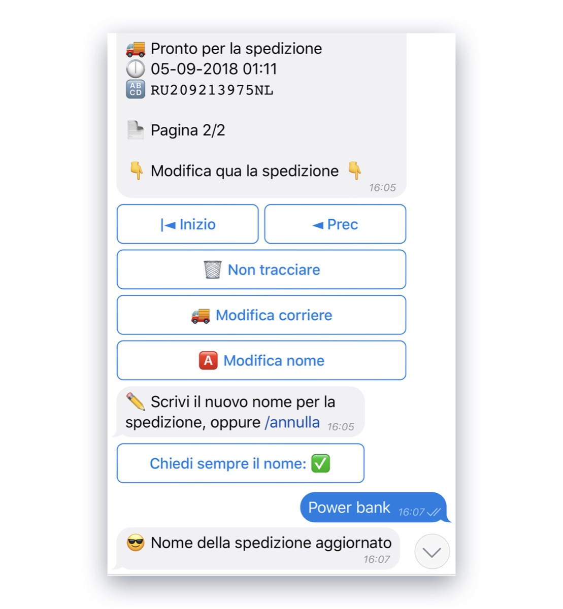 Prima infatti era necessario digitare alcuni comandi specifici – come /traccia per avviare il processo di tracking di un pacco o /lista per leggere lo stato di tutti i pacchi che si stanno monitorando – e seguire le istruzioni a schermo mentre adesso non è più necessario ricordarli: basta semplicemente aprire la chat e digitare il codice di tracking della spedizione, premere invio e il gioco è fatto.