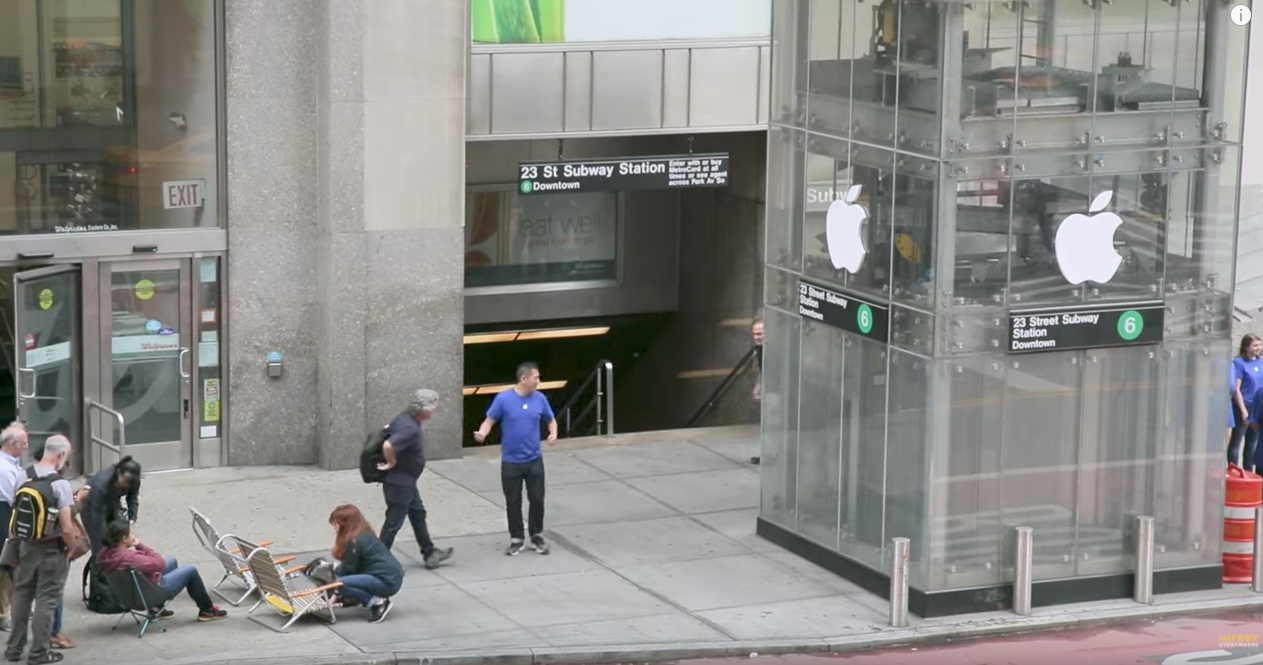 Il collettivo Improv Everywhere ha recentemente trasformato una stazione della metropolitana di New York in un Apple Store falso, completo di falsi dipendenti e falsi clienti in coda da attendere il lancio di iPhone X. Il gruppo ha iniziato montando un grande logo Apple su un ascensore in vetro all’angolo di East 23rd Street e Park Avenue a Manhattan, che porta ai treni sulla Linea Lexington Avenue.