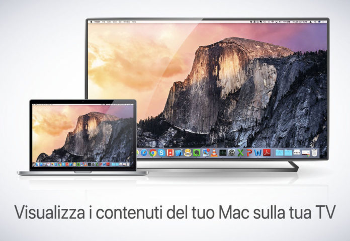 Sia il Mac, sia la Smart TV devono ovviamente essere collegati alla stessa rete. All’avvio compare una nuova icona nella barra dei menu; facendo click su questa icona, l’applicazione esegue la scansione dei dispositivi di rete e individua la TV (la prima volta potrebbe essere necessario attendere qualche minuto). Quando la TV viene individuata basta selezionare la voce “Start Mirroring at..” e scegliere (con il telecomando) “Consenti” sulla TV.