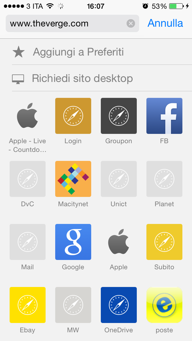 Per alcuni siti Safari reindirizza gli utenti sulle pagine internet in versione mobile. Dopo aver raggiunto un sito in versione mobile, sarà sufficiente cliccare nuovamente sulla barra degli indirizzi ed effettuando uno slide verso il basso è possibile raggiungere facilmente l’opzione “richiedi versione desktop”.