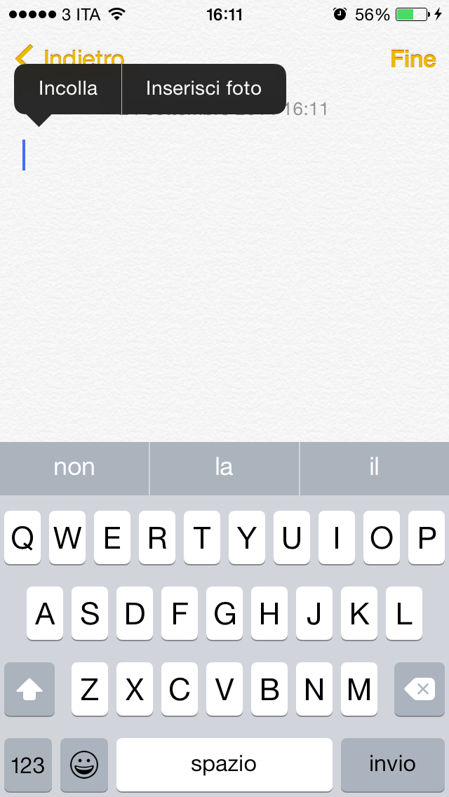 Mantenendo la pressione del dito sullo schermo all’interno dell’applicazione Note sarà possibile inserire un’immagine insieme ai propri appunti testuali.