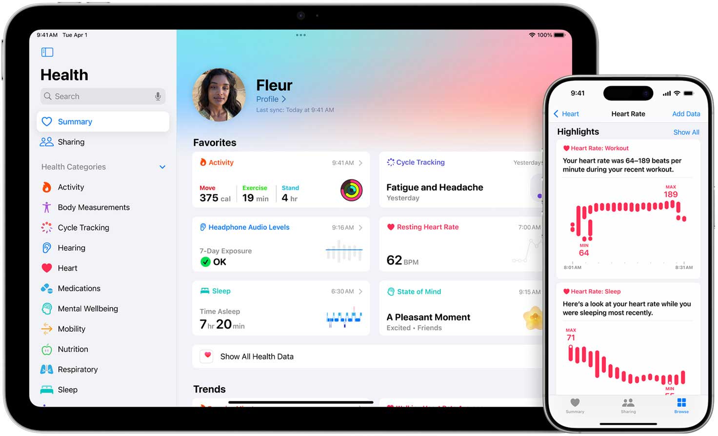 L’app di Apple permette di raccogliere dati sanitari importanti, come farmaci, sonno, attività e altro ancora, in un unico posto sicuro a cui è facile accedere da iPhone e iPad; fornisce inoltre grafici interattivi e analisi avanzate dei trend, in modo da poter monitorare e visualizzare i dati nel tempo