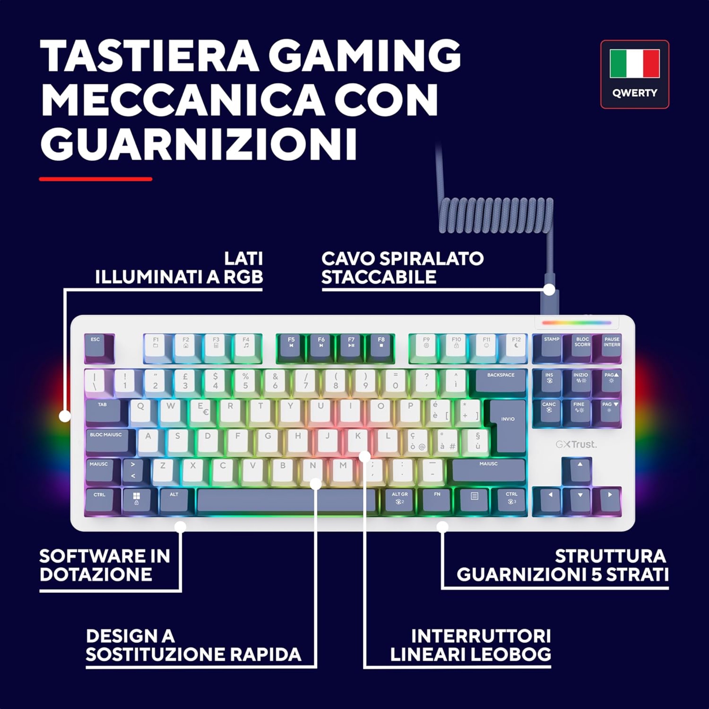 È pensata principalmente il gaming e si contraddistingue anche per il suo design compatto senza tastierino numerico. Trattasi infatti di un modello TKL (Tenkeyless) che generalmente i giocatori preferiscono perché permette di avere più spazio sulla scrivania, da dedicare magari al mouse.