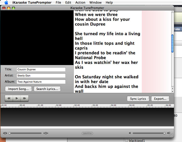 Griffin ha rilasciato la sua prima versione del software gratuito TunerPronter in grado di sincronizzare (o meglio di farvi sincronizzare) il testo di qualsiasi canzone abbiate sul vostro computer (Mac o PC). Il software può funzionare in combinazione con con il suo microfono/interfaccia iKaraoke ma anche, come vedremo, con altri strumenti hardware e per altri impieghi.