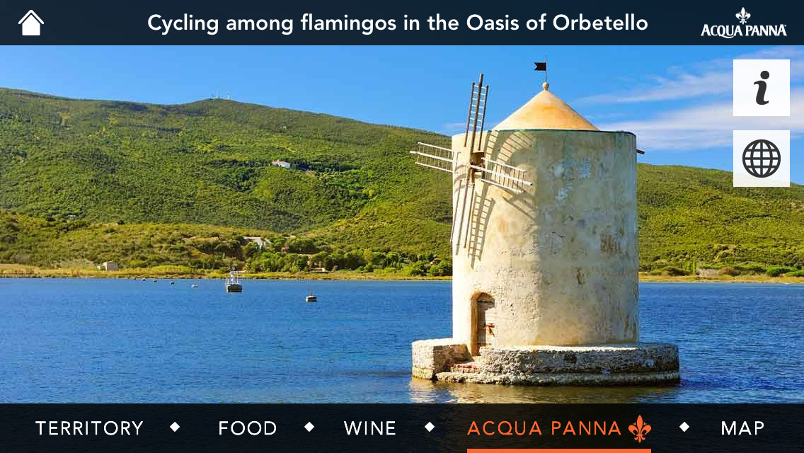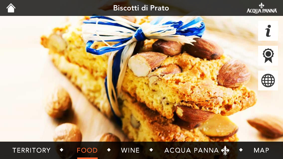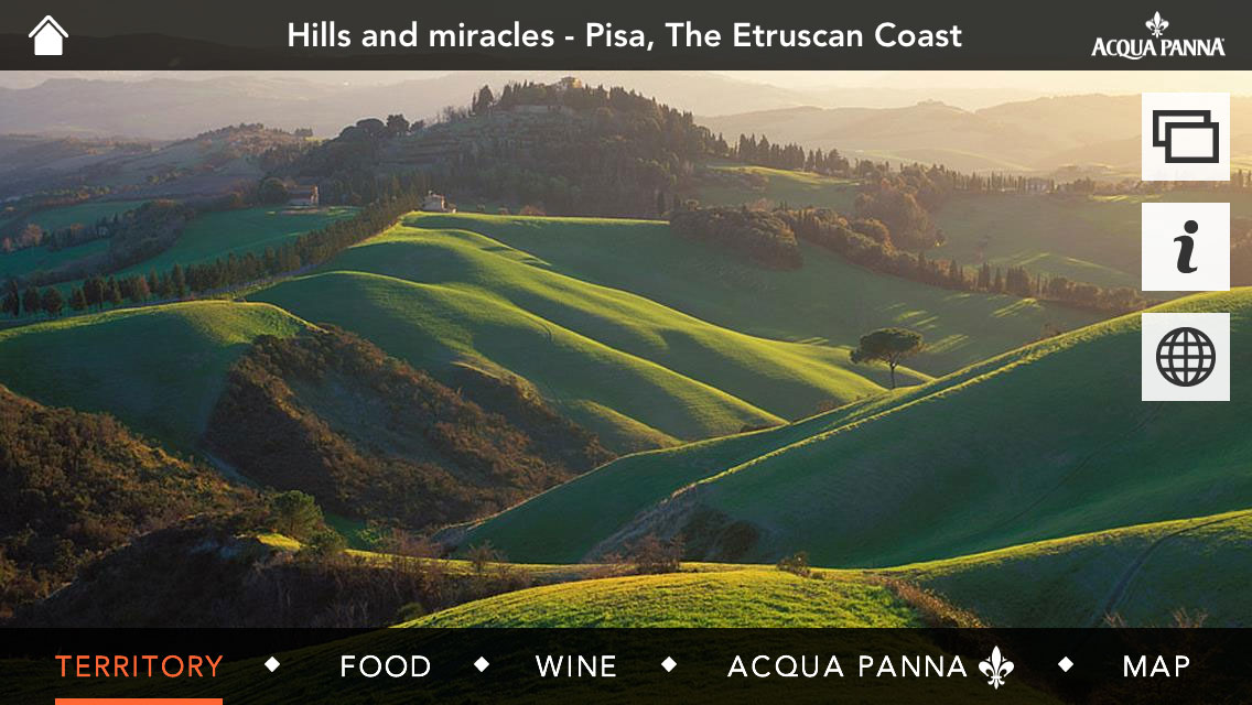 Navigando, inoltre, le varie sezioni Territory, Food, Wine è possibile trovare e consultare decine di descrizioni e foto di piatti e prodotti tipici, ingredienti e dettagli legati alla loro produzione, al territorio e alla tradizione toscana. Non poteva, infine, mancare l’indicazione dei vini: decine di etichette di qualità, con le loro caratteristiche, il grado alcolico, gli uvaggi e gli abbinamenti. Sarà anche possibile trovare nella sezione Acqua Panna diversi suggerimenti sulle esperienze da vivere e le bellezze legate alla natura, sull’arte e la cultura della regione: dalle terme ai parchi naturali, dalle ville medicee ai borghi medievali.