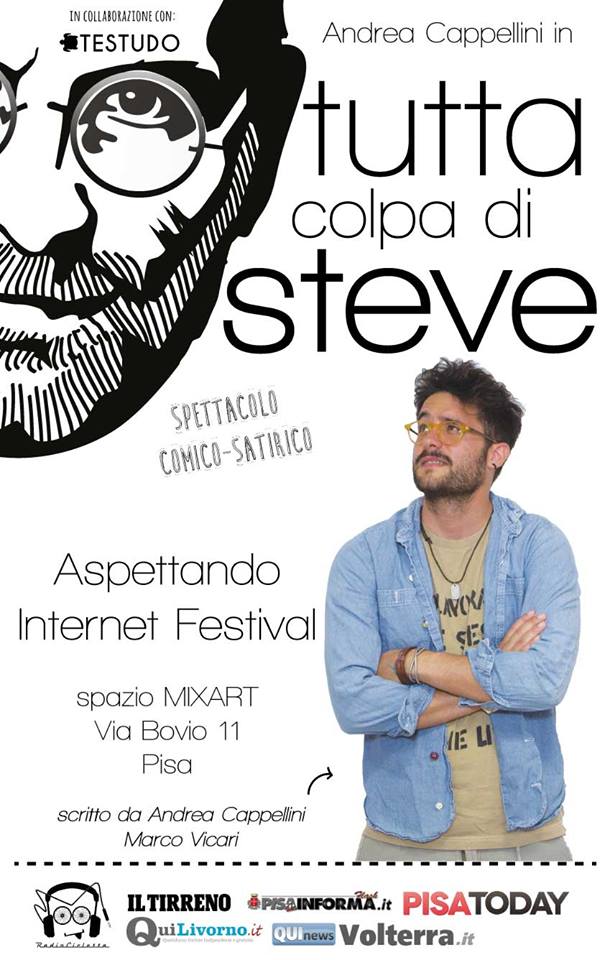“Tutta colpa di Steve” va in scena a Pisa sabato 4 ottobre: lo spettacolo comico che mette a confronto la generazione di Steve Jobs e quella dei precari dell’anno 2000, è un monologo di Andrea Cappellini, autore per il Vernacoliere e Spinoza e giovane attore monologhista di Zelig Lab. Dopo un’opera lirica e altri spettacoli dedicati a Steve Jobs, ecco ora un monologo comico che mette al centro il cofondatore di Apple. Il tema questa volta non è la vita di Jobs: “Tutta colpa di Steve” mette in scena un faccia a faccia tra le opportunità della Silicon Valley degli anni Ottanta e la desolazione dell’Italia del 2014, tra chi è riuscito a realizzare i propri sogni e chi invece ha il sogno di arrivare a fine mese.