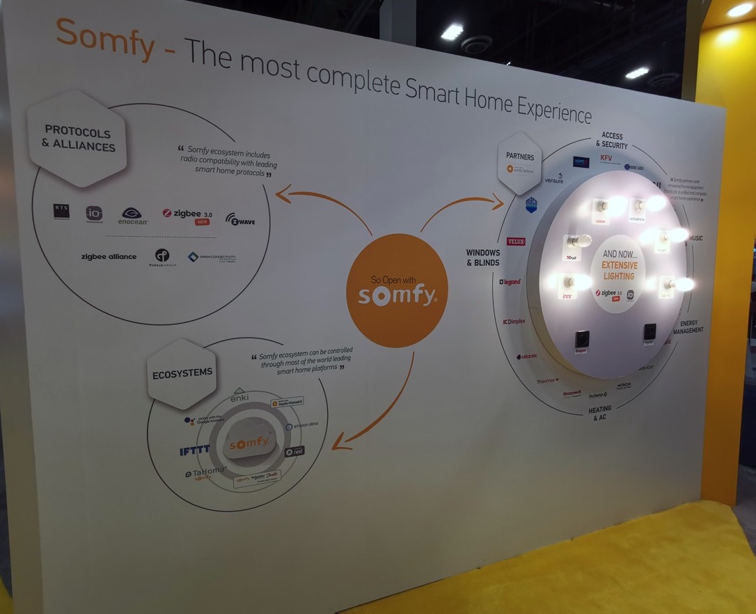 Il logo con il numero 50 campeggiava quest’anno nel grande e luminoso stand di Somfy al CES 2019. La collocazione era la stessa ma il numero di prodotti presentati, era sicuramente più significativo. Tra questi gli annunci di compatibilità prossima ventura con il sistema domotico di Apple.