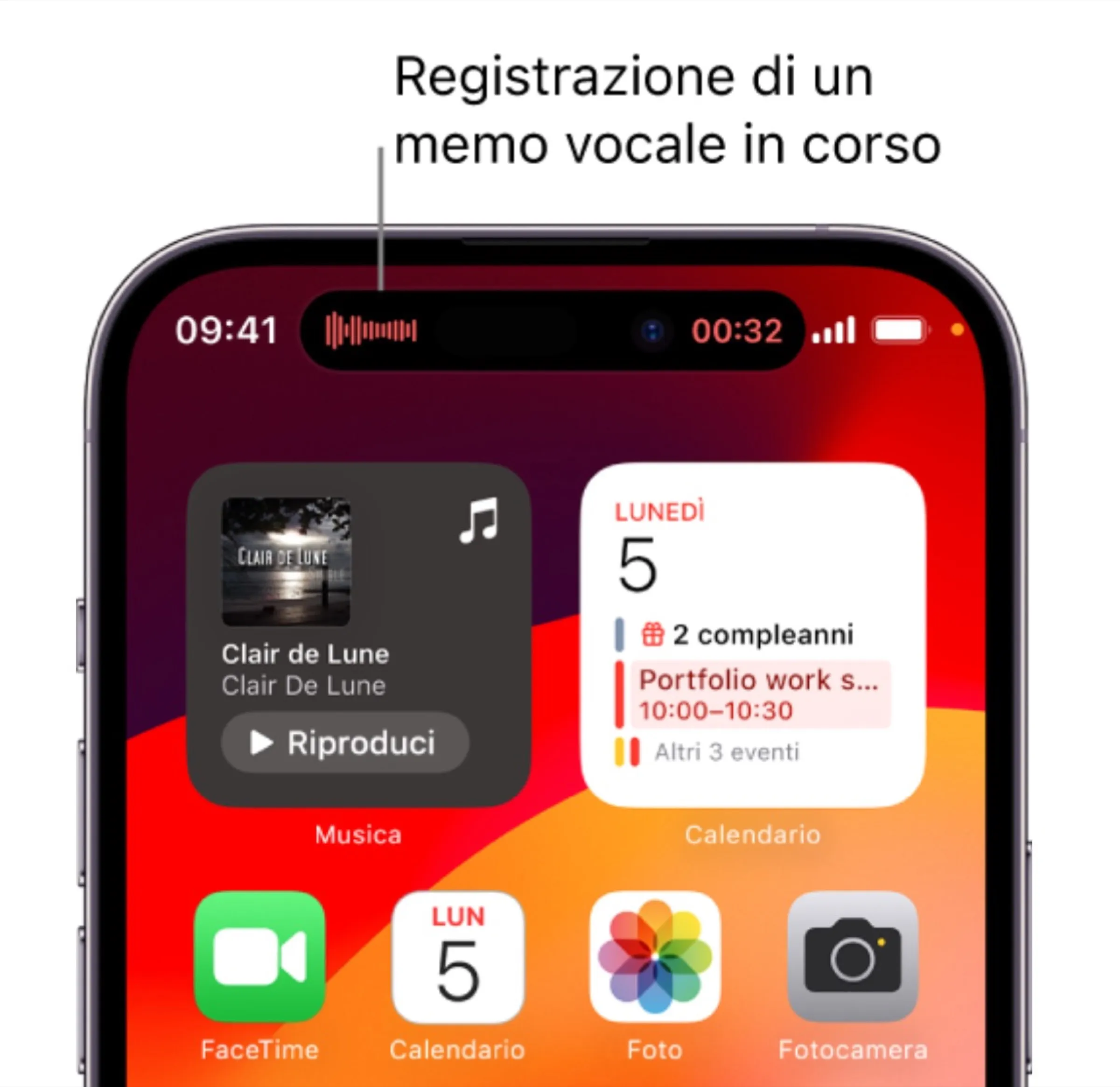 Quando è “spenta”, la Dynamic Island ha la forma di una specie di pillola. Come avrete notato è sensibilmente più piccola del famoso Notch di iPhone X e successivi, che oltre ai componenti sopracitati accoglieva anche: