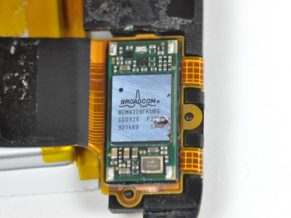 Ma oltre allo spazio per la digicamera, un’altra sorpresa emerge dalla dissezione dell’iPod touch: si tratta del processore Broadcom BCM4329 che governa il Wifi del dispositivo ed è compatibile con la versione “n” dello standard senza fili, ovvero la versione superveloce già adottata dai Mac. L’apparizione della componente (di cui Macity ha parlato qui), mai vista in precedenza in prodotti Apple, significa che Cupertino è in grado teoricamente di abilitare connessioni non solo molto più veloci di quelle possibili con lo standard “g”, ma anche più affidabili e con raggio superiore. Il chip Broadcom BCM4329 è anche compatibile con la frequenza FM sia in trasmissione che in ricezione; un sintonizzatore FM per l’iPod touch, fino a ieri poco probabile, è oggi più vicino visto le scelte compiute con l’iPod nano.
