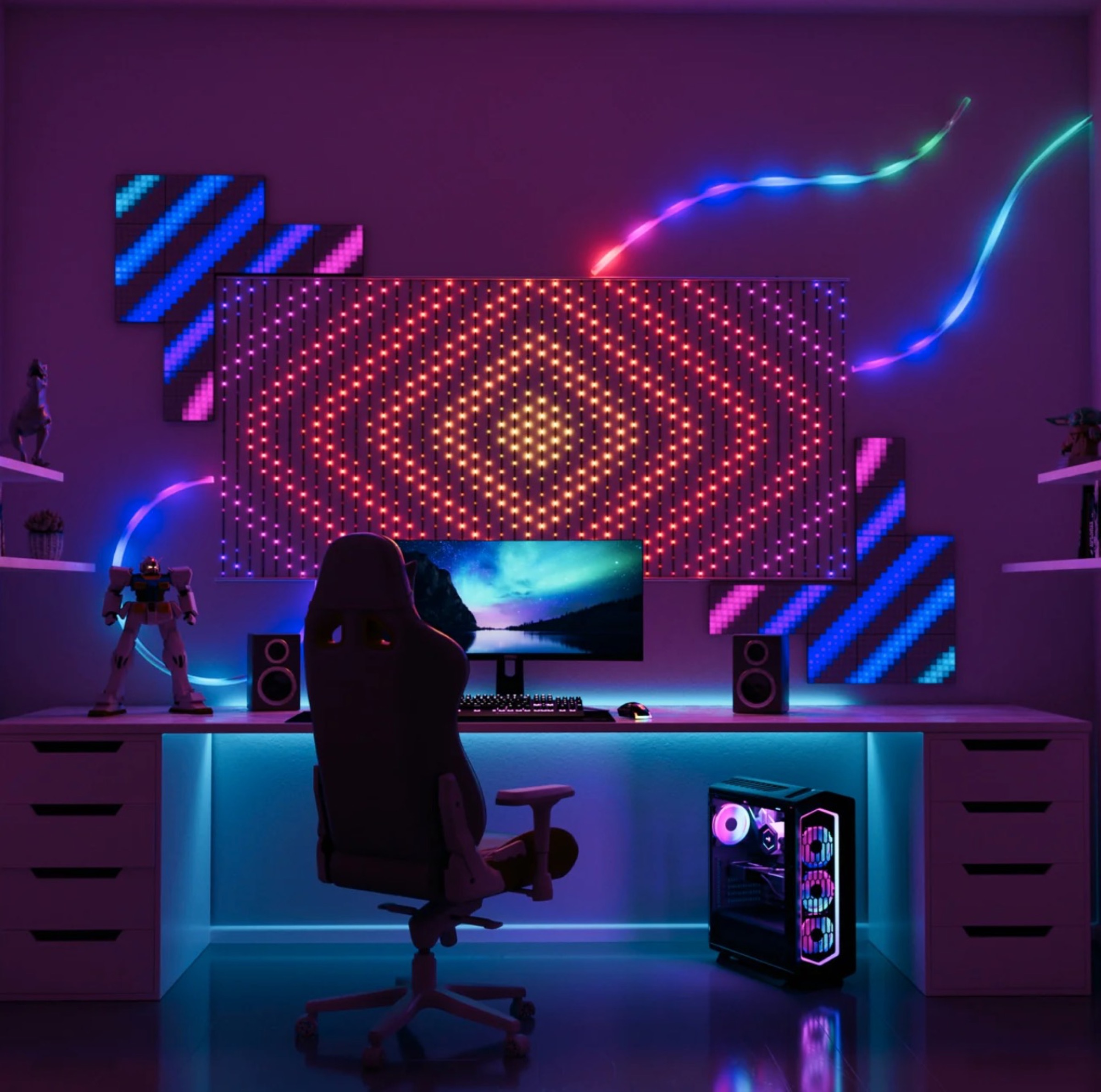 L’azienda lo presenta come prodotto per le stanze da gaming, ma gli usi sono pressoché infiniti proprio perché colore, forma e stile si può cambiare in base all’occorrenza. Così in un salotto può diventare in un quadro di Pop Art, oppure sulla parete di un negozio lo strumento perfetto per promuovere prodotti e offerte speciali.