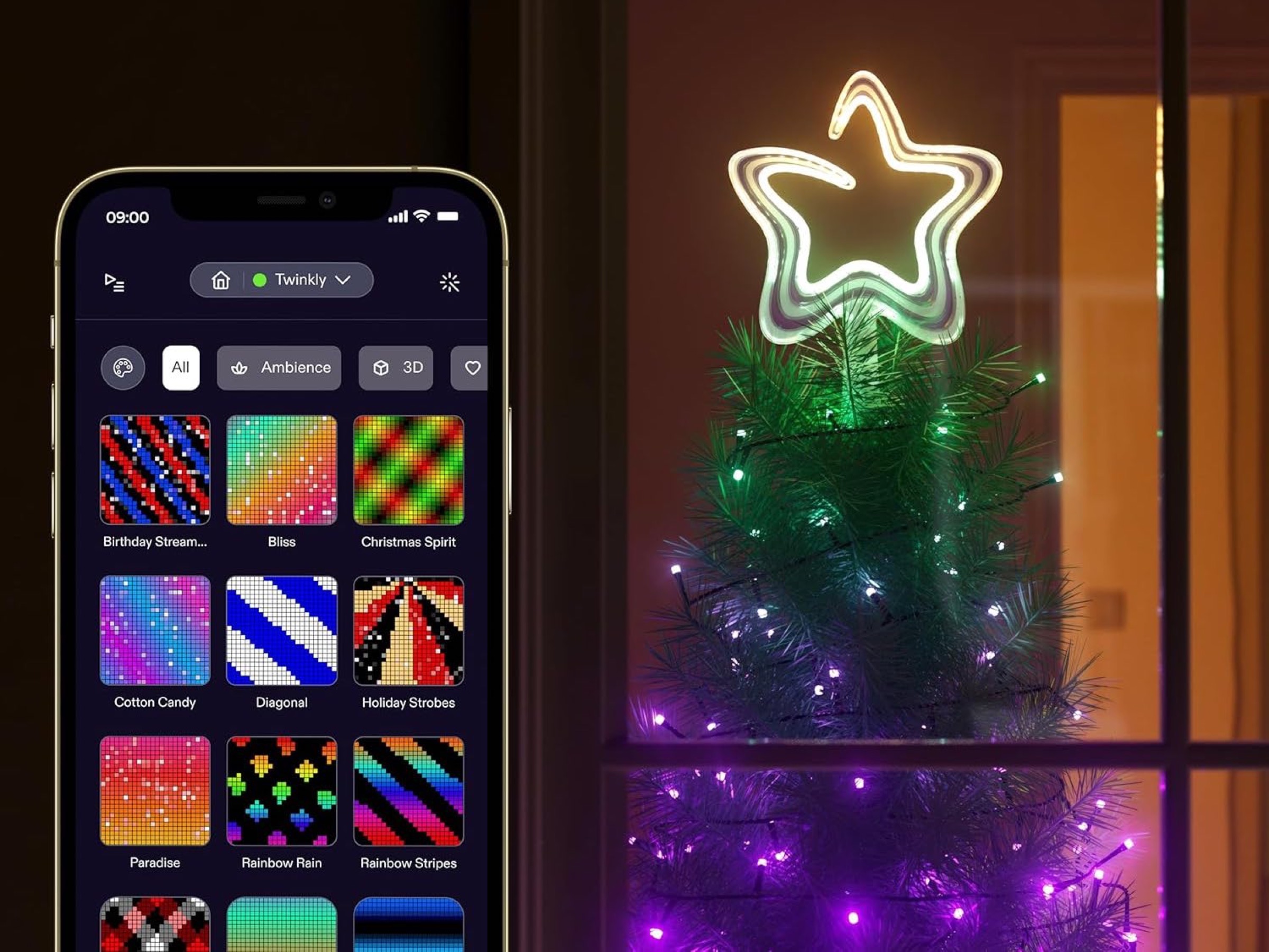 Le luci LED integrate nel Twinkly Tree Topper sono programmabili e, proprio come accade con la catena di LED per i rami dell’albero, possono essere controllate tramite l’app Twinkly per iPhone, iPad e Android.