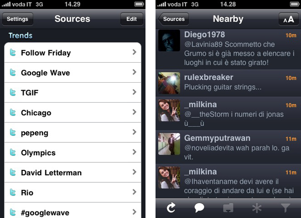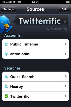 La terza cosa? Twitter non si segue sul suo sito. La cosa bella è che si possono usare tutti i software che si vogliono: alcuni a pagamento, molti altri (il 70%) gratuiti… e molti si trovano su Mac e su iPhone-iPod touch. Una figata, si potrebbe dire, perché grazie a questi software l’esperienza di uso di Twitter può variare molto: alcuni sono tecnicamente fatti meglio, altri hanno una interfaccia che è la fine del mondo. Il risultato è che, a differenza di Second Life, di MySpace e di Facebook, Twitter sta avendo successo anche perché mette il potere nelle mani degli sviluppatori e degli utenti, e lui si trasforma in una piattaforma.