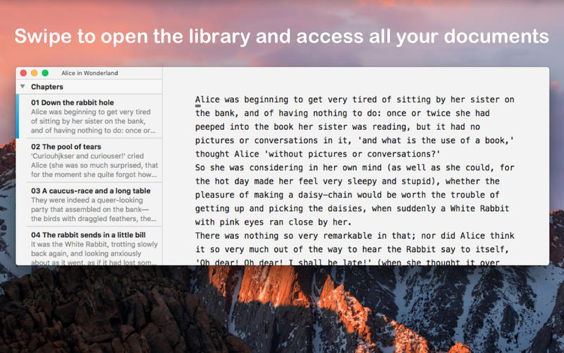 Anche la dimensione del testo sullo schermo può essere modificata (small, medium, large, XL), così come la larghezza dell’area di ediring. Ottima è la possibile di visualizzare statistiche (numero di parole e singoli caratteri) e sfruttare “librerie” (cartelle da trascinare con il drag&drop a sinistra della finestra principale, con testi da richiamare “al volo”).