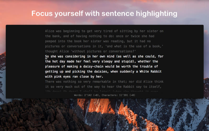 Peculiarità del programma è la possibilità di evidenziare in automatico il paragrafo nel quale si sta scrivendo (il testo restante viene mostrato più scuro rispetto al paragrafo sul quale è posto il cursore).